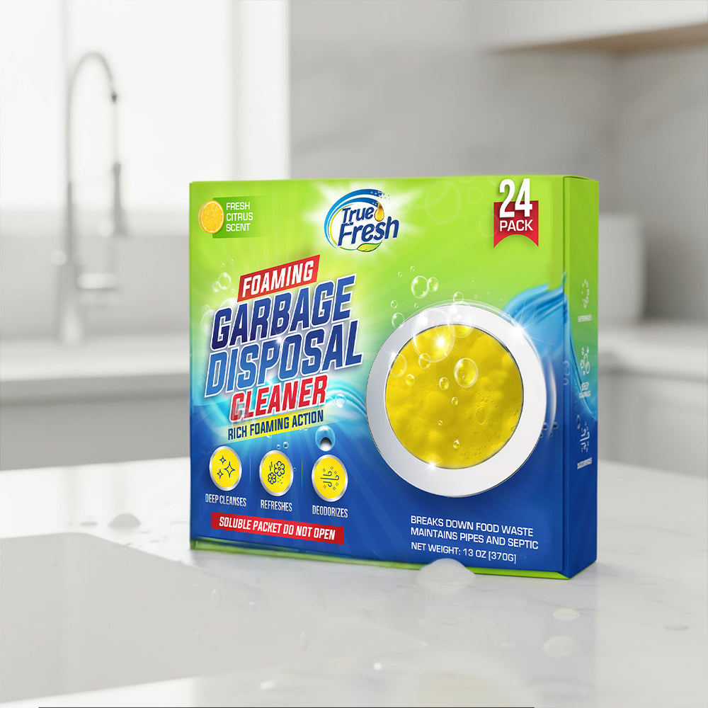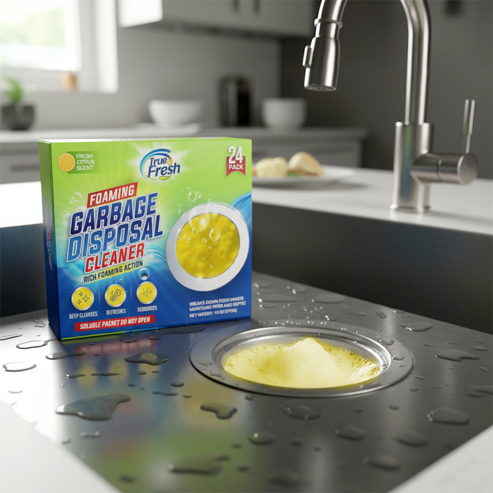 Using the True Fresh Garbage Disposal Cleaner Pods regularly helps keep your kitchen sink running smoothly and feeling clean. The pods use a strong foaming action to break down food residue, grease, and buildup that collect inside the disposal over time.