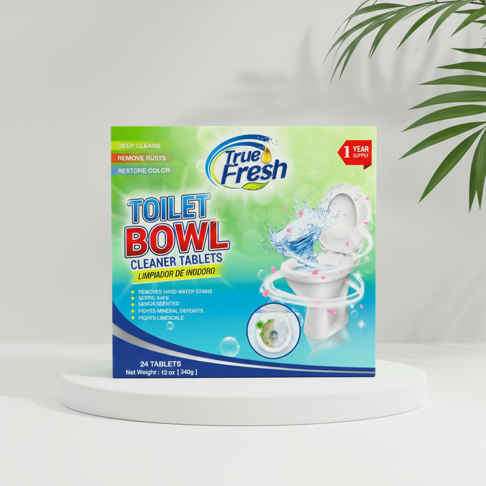 Each 24-count pack ensures you have enough tablets for months of consistent cleaning. True Fresh Toilet Bowl Cleaner Tablets are your trusted solution for maintaining a fresh and clean toilet.