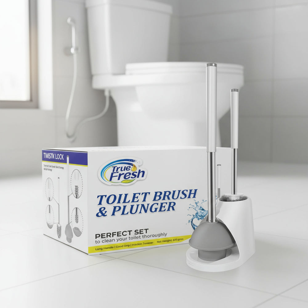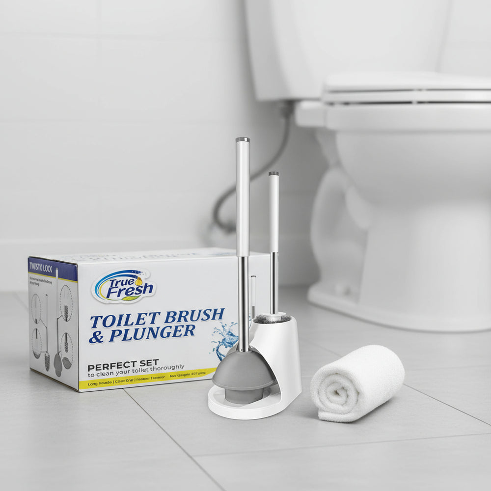True Fresh Toilet Brush & Plunger Set offers high-performance cleaning for your toilet bowl. The brush features durable bristles, ensuring a 360° clean, reaching every corner, even those difficult-to-reach spots under the rim.