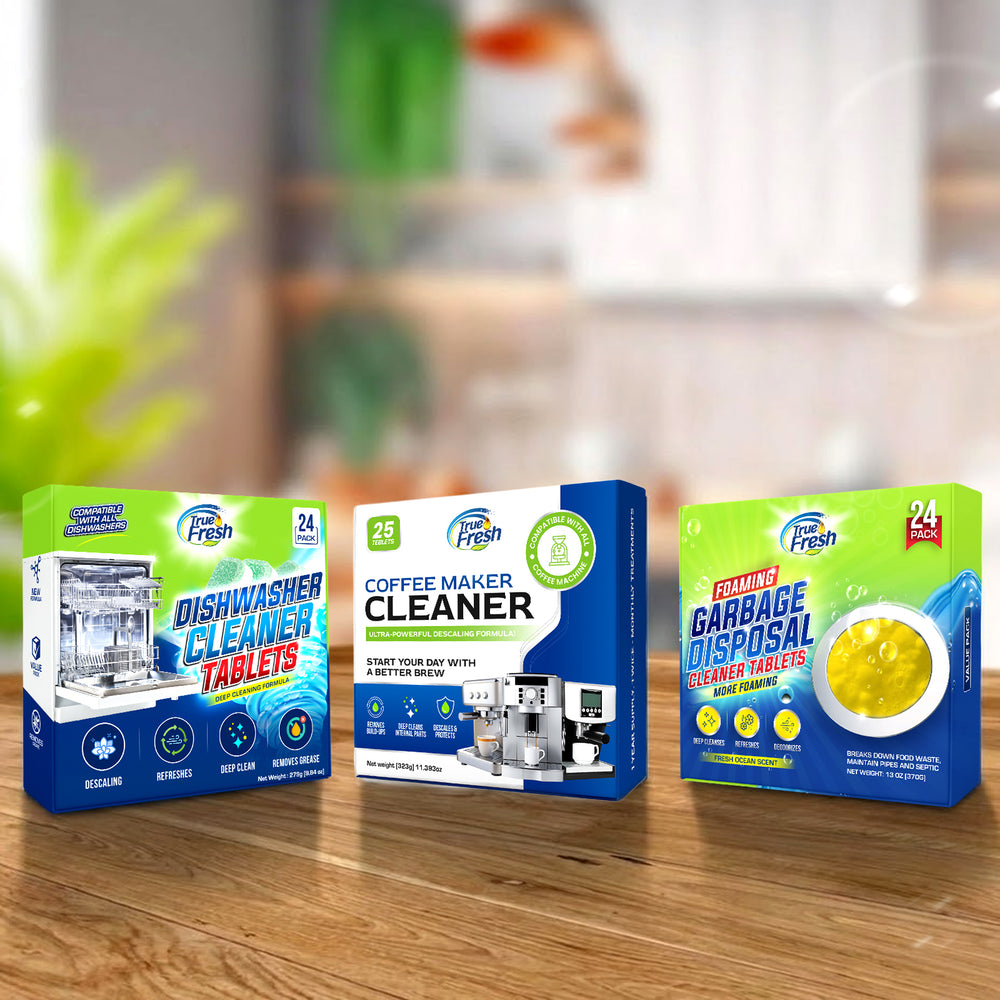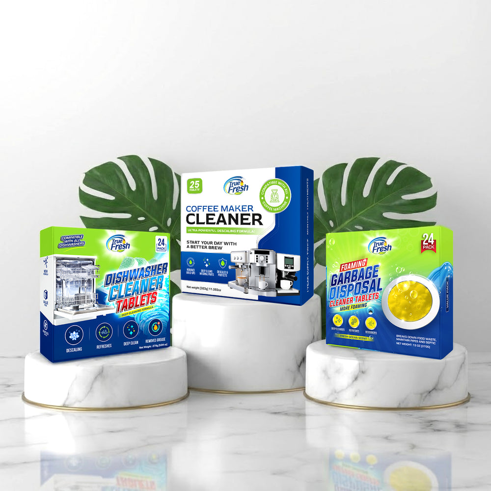 This kitchen appliance cleaning bundle is designed to break down grease, loosen stuck-on residue, and reduce mineral buildup across your dishwasher, coffee machine, and garbage disposal, reaching deep internal areas for better overall performance.